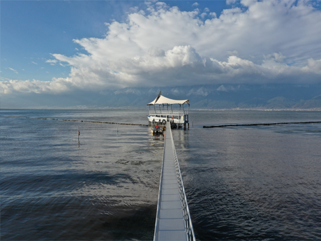 采用高效可調(diào)式渦井取藻、藍藻囊團破壁、一體化二級強化氣浮等核心技術(shù),岸上站點藻水分離系統(tǒng)集成了藍藻打撈、脫氣沉降、氣浮分離、脫水等多個環(huán)節(jié)的技術(shù)和設(shè)備,形成了可規(guī)模化和工廠化處理藍藻的基站。適用于藍藻水華長期規(guī)律性、大范圍聚集區(qū)域的常態(tài)化應(yīng)急處置。